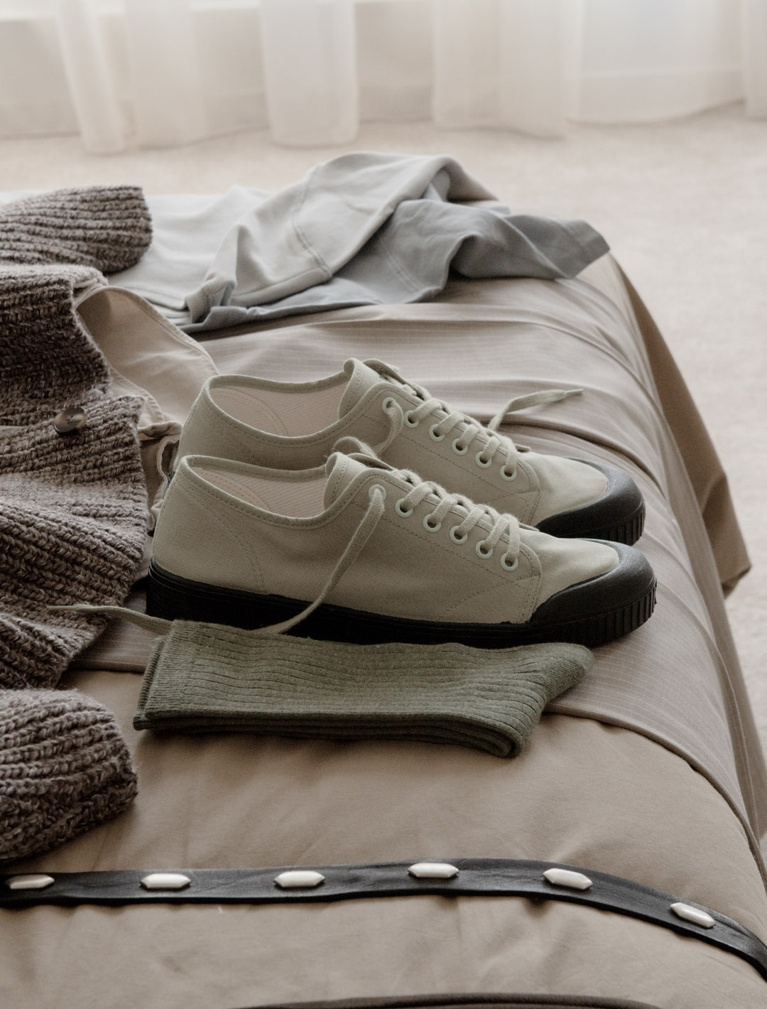 90年の歴史、クレーコートからパリの石畳まで。生キャンバス地が自然に足にフィットし、その粗い質感は、長く使えるシンプルなアイテムを彷彿とさせます。密で柔軟なゴム底は、作業靴や船乗りの靴の頑丈さを思わせます。ニュートラルな色合いは、時が経つにつれて風合いが増していきます。